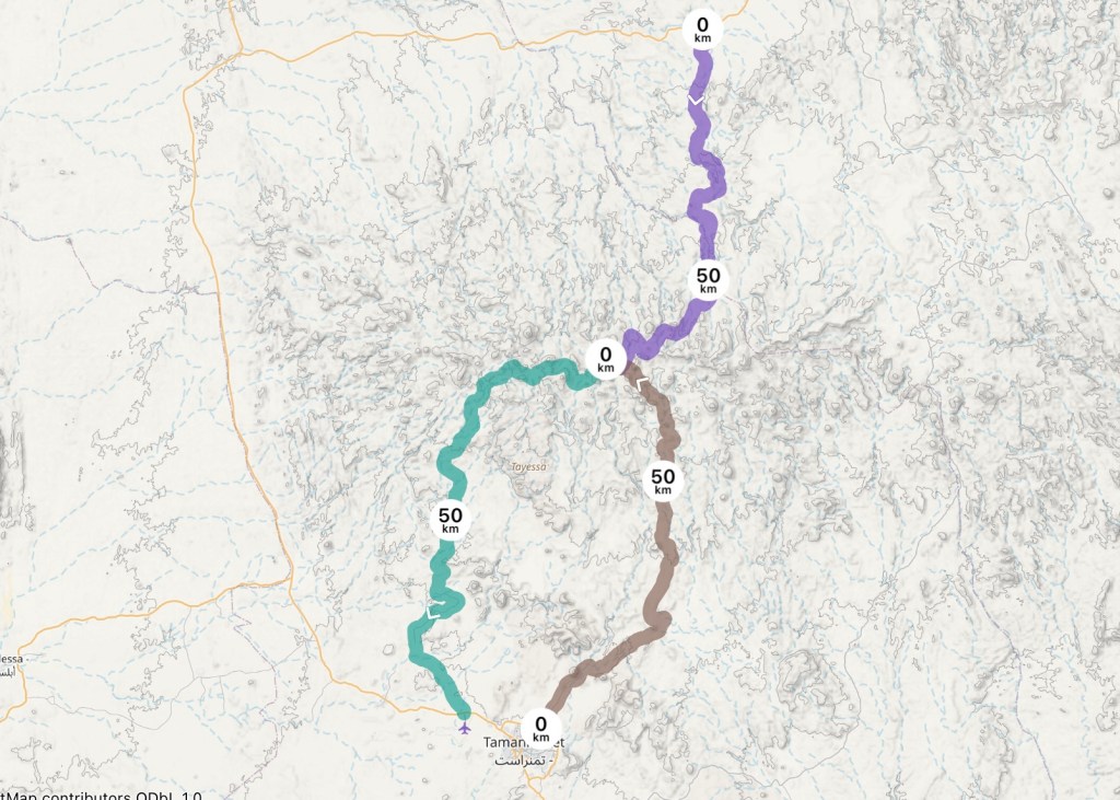 Three routes to/from Assekrem | 78 km, 80 km & 87km | ⅕, ⅘ & ⅘