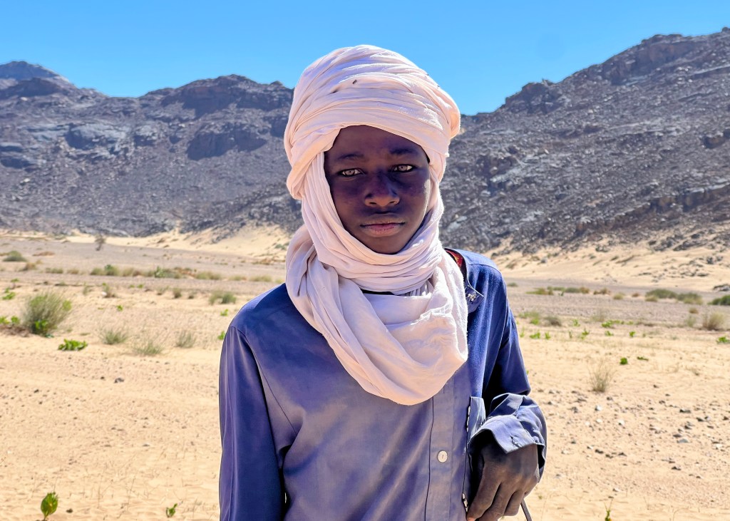 Headed east from the main TSH north of In Amguel, the route is initially a series of fairly unremarkable sandy but easily manageable tracks in oueds for a few hours, until you reach the main piste that takes you to the oasis village of Mertoutek with its pleasant guelta. It’s a good place for a rest or lunchtime break but perhaps a little bit close to the village centre to camp for the night. There’s supposedly (so I was told) a shop here with some somewhat variable opening hours, but I was unable to find it.