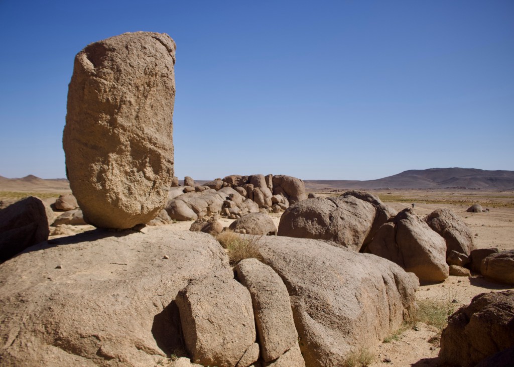 Otherwise, there is a decent-length loop that leaves the tarmac to head south into the centre of the Ahagger. This excursion is around 80 km is well worth the effort for the dramatic dark rocks and stones that characterise the area and a remarkable series of large free standing stones of all sorts of shapes and sizes which look like they’ve just been dropped in to the otherwise desolate landscape from above. The riding is fun, flowing and fast, with the potential for camping at the various collections of stones en route.