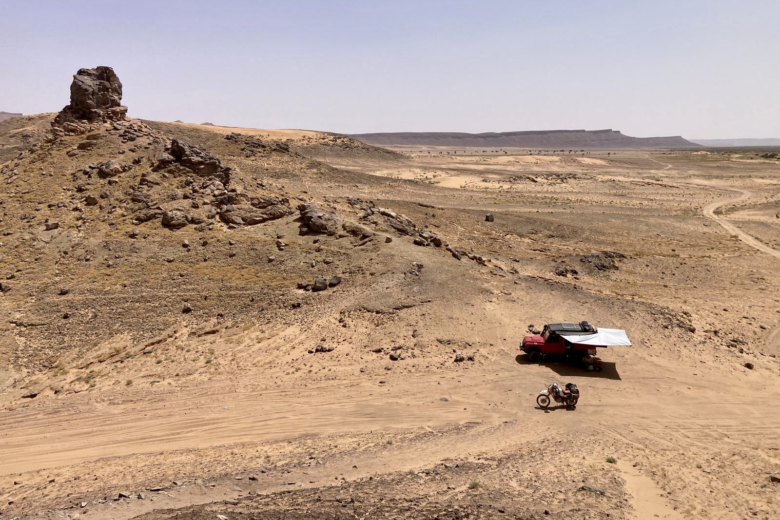 Autonomous travel is essential, requiring sufficient water, fuel, food, and spare parts, as the central 100+ km lacks mobile signal. Reliable GPS is critical for navigation. I would recommend being prepared for substantial sections of sand, requiring experience, a suitable bike and low tyre pressures.